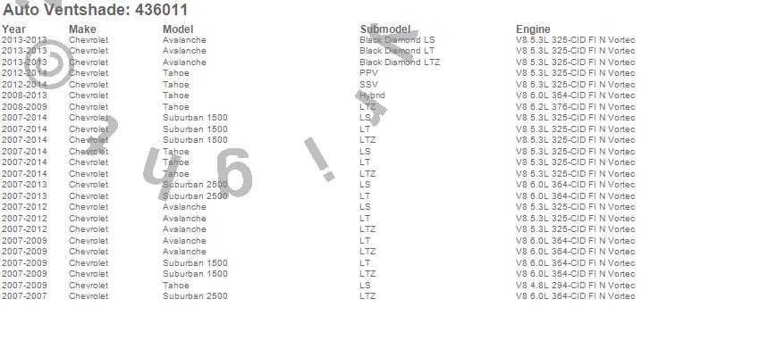 Below is an abbreviated list of applications for the Aeroskin II Hood Protector Textured Black.