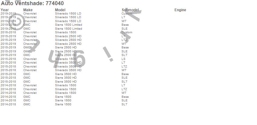 Below is an abbreviated list of applications for the Ventvisor Low Profile Deflector 4 pc..