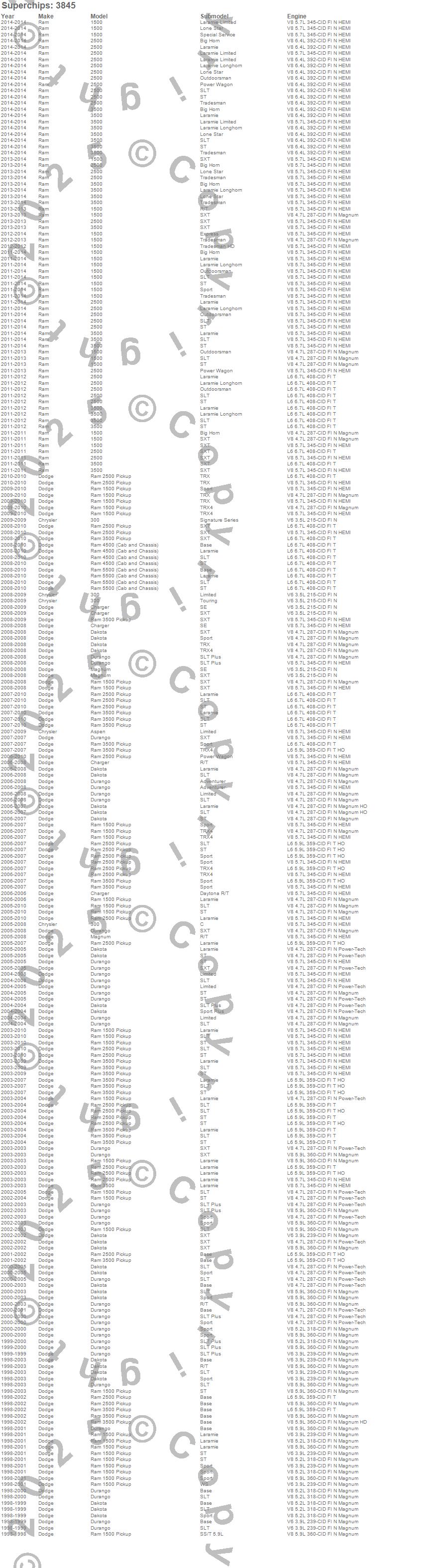 1500, 2500, 300, 3500, Aspen, Charger, Dakota, Durango, Magnum, Ram 1500, Ram 2500, Ram 3500, Ram 4500, Ram 5500, Chrysler, Dodge, Ram, 2014, 2013, 2012
