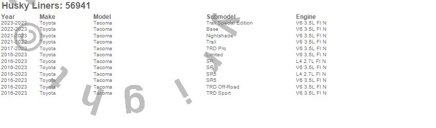 Husky Liners - Custom Molded Mud Guards P/N 56941 Features:
