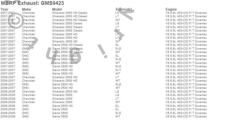 Below is an abbreviated list of applications for the Armor Plus Exhaust Adapter.