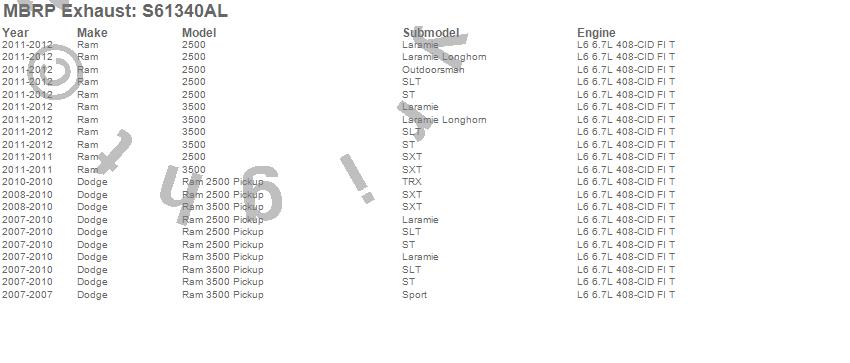 Below is an abbreviated list of applications for the Armor Lite Filter Back Exhaust System.