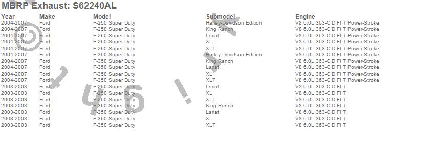 Below is an abbreviated list of applications for the Armor Lite Turbo Back Exhaust System.