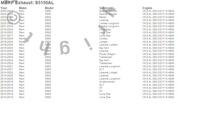 Below is an abbreviated list of applications for the Armor Lite Cat Back Exhaust System.