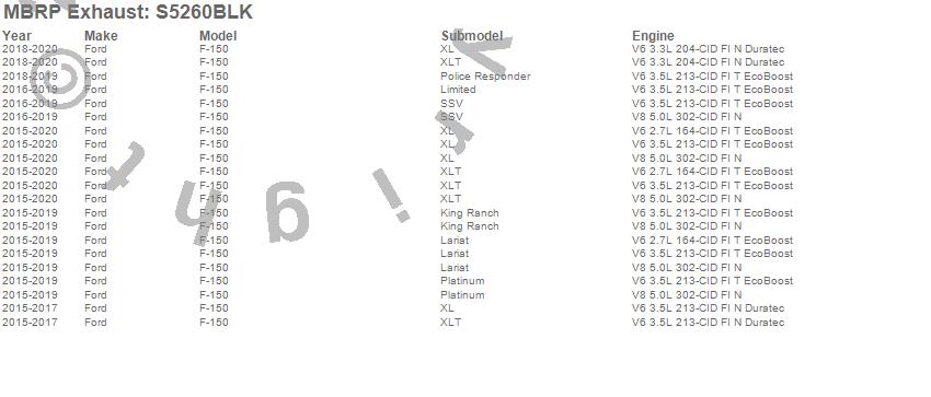Below is an abbreviated list of applications for the Armor BLK Cat Back Exhaust System.