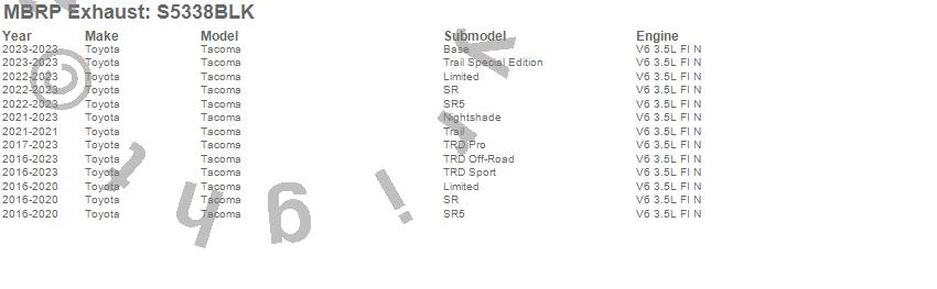 Below is an abbreviated list of applications for the Armor BLK Cat Back Exhaust System.