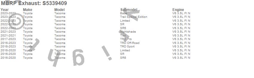 Below is an abbreviated list of applications for the Armor Plus Cat Back Exhaust System.