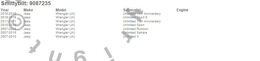 Wrangler (JK), Jeep, 2018, 2017, 2016, 2015, 2014, 2013, 2012, 2011, 2010, 2009, 2008, 2007