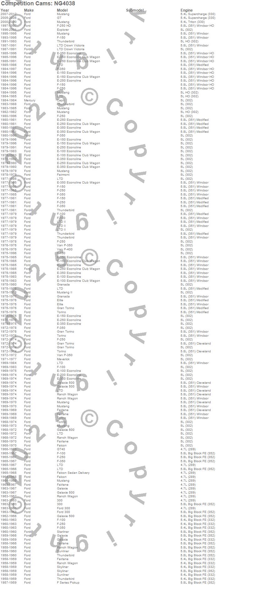 Below is an abbreviated list of applications for the Valve Cover Set.