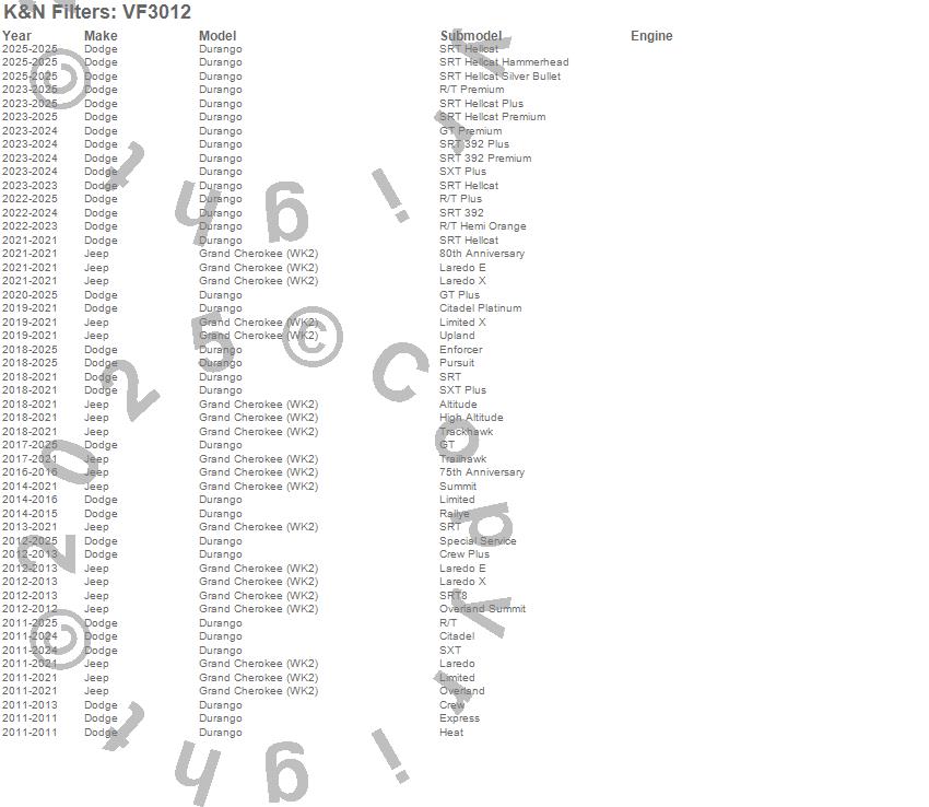 Durango, Grand Cherokee (WK2), Dodge, Jeep, 2026, 2025, 2024, 2023, 2022, 2021, 2020, 2019, 2018, 2017, 2016, 2015, 2014, 2013, 2012, 2011