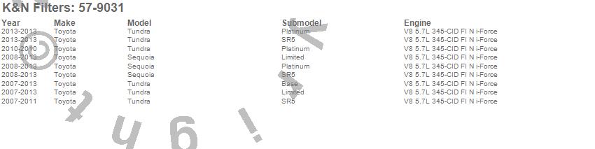 Below is an abbreviated list of applications for the 57i Series Induction Kit.