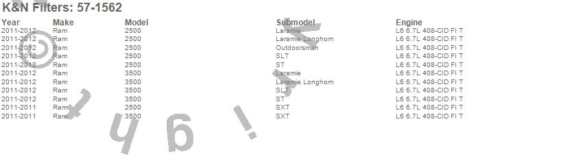 Below is an abbreviated list of applications for the Filtercharger Injection Performance Kit.