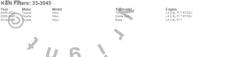 Below is an abbreviated list of applications for the Air Filter.