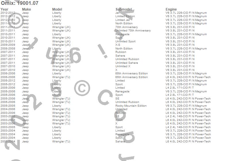 Liberty, Wrangler (JK), Wrangler (LJ), Wrangler (TJ), Jeep, 2012, 2011, 2010, 2009, 2008, 2007, 2006, 2005, 2004, 2003