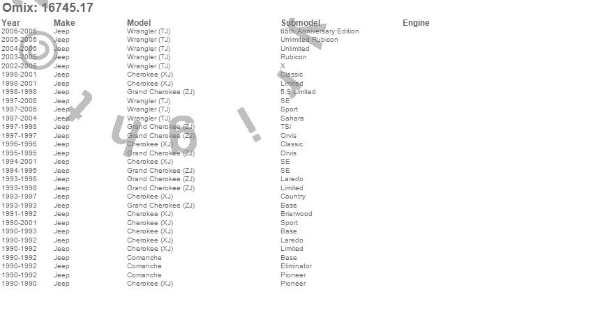 Cherokee (XJ), Comanche, Grand Cherokee (ZJ), Wrangler (LJ), Wrangler (TJ), Jeep, 2006, 2005, 2004, 2003, 2002, 2001, 2000, 1999, 1998, 1997, 1996, 1995, 1994, 1993