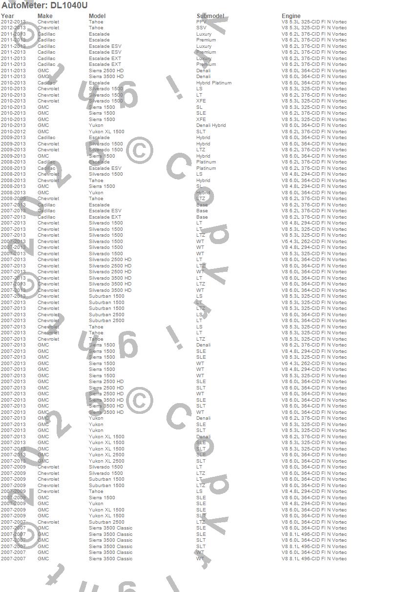 Escalade, Escalade ESV, Escalade EXT, Sierra 1500, Sierra 2500 HD, Sierra 3500 Classic, Sierra 3500 HD, Silverado 1500, Silverado 2500 HD, Silverado 3500 HD, Suburban 1500, Suburban 2500, Tahoe, Yukon, Yukon XL 1500, Yukon XL 2500, Cadillac, Chevrolet, GMC, 2013