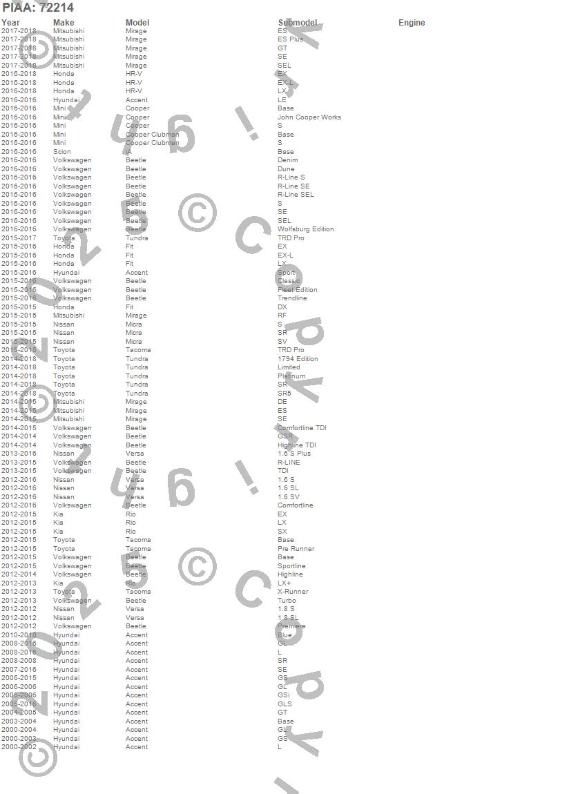 Accent, Beetle, Cooper, Cooper Clubman, Fit, HR-V, iA, Micra, Mirage, Rio, Tacoma, Tundra, Versa, Honda, Hyundai, Kia, Mini, Mitsubishi, Nissan, Scion