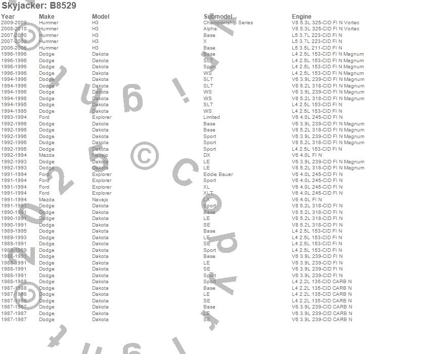 Dakota, Explorer, H3, Navajo, Dodge, Ford, Hummer, Mazda, 2010, 2009, 2008, 2007, 2006, 1996, 1995, 1994, 1993, 1992, 1991, 1990