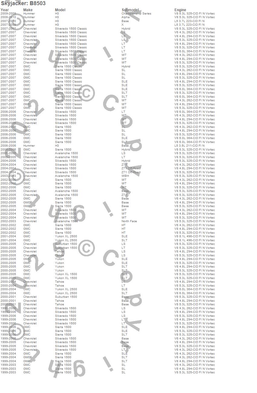 Avalanche 1500, H3, Sierra 1500, Sierra 1500 Classic, Silverado 1500, Silverado 1500 Classic, Suburban 1500, Tahoe, Yukon, Yukon XL 1500, Yukon XL 2500, Chevrolet, GMC, Hummer, 2010, 2009, 2008, 2007, 2006, 2005