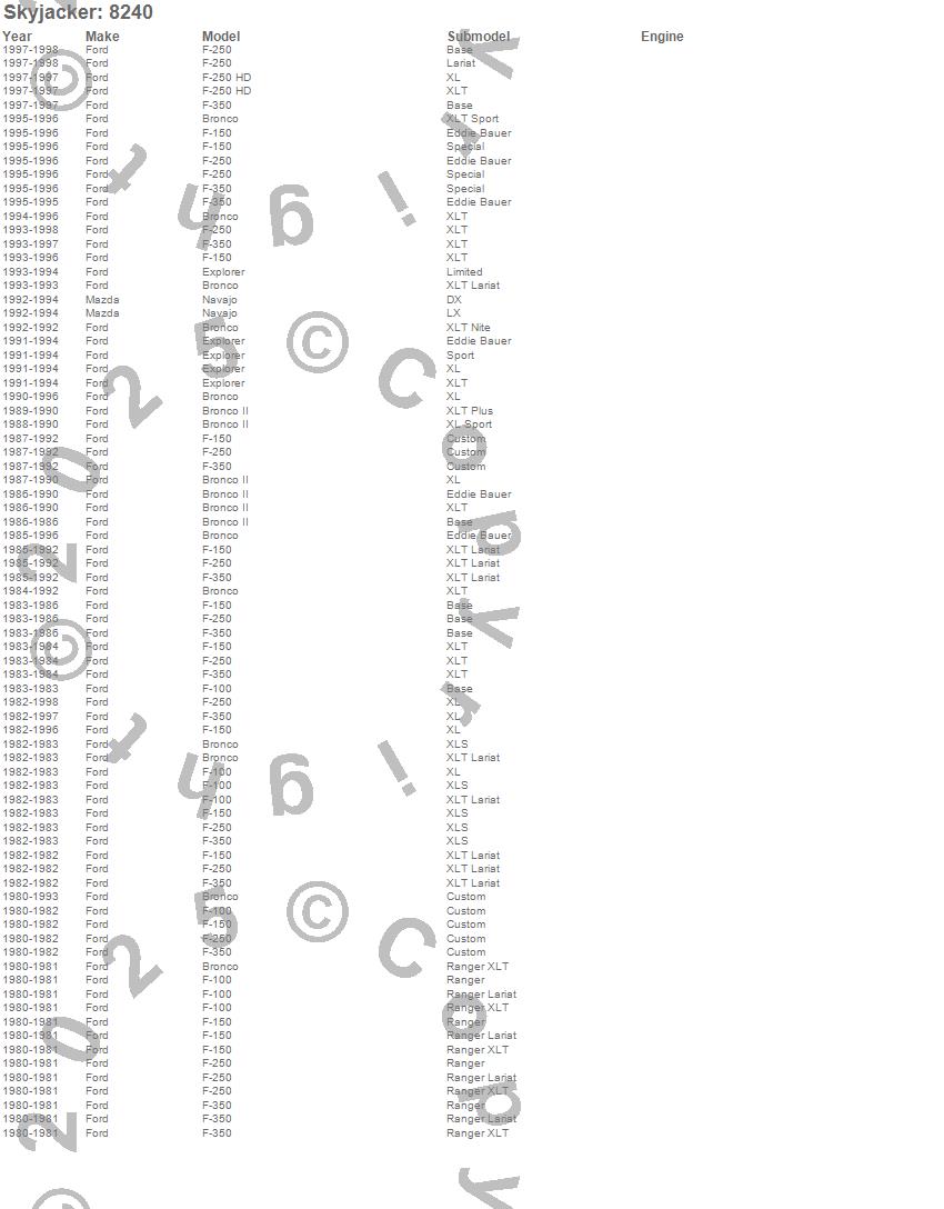 Bronco, Bronco II, Explorer, F-100, F-150, F-250, F-250 HD, F-350, Navajo, Ford, Mazda, 1998, 1997, 1996, 1995, 1994, 1993, 1992, 1991, 1990