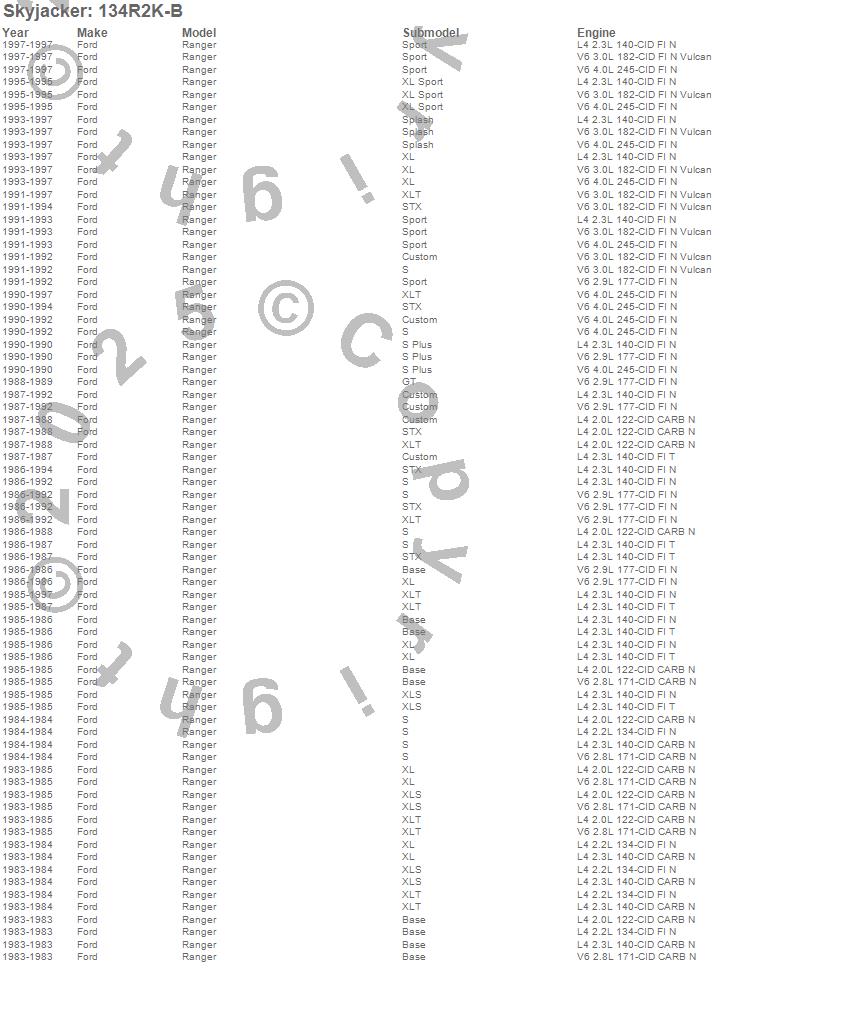 Ranger, Ford, 1997, 1996, 1995, 1994, 1993, 1992, 1991, 1990, 1989, 1988, 1987, 1986, 1985, 1984, 1983