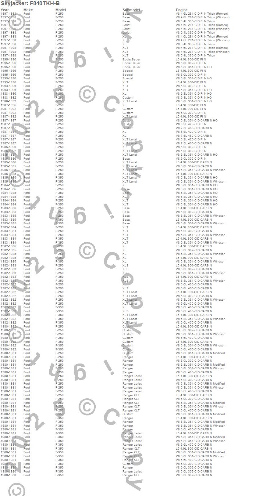 F-250, F-350, Ford, 1998, 1997, 1996, 1995, 1994, 1993, 1992, 1991, 1990, 1989, 1988, 1987, 1986, 1985, 1984, 1983, 1982