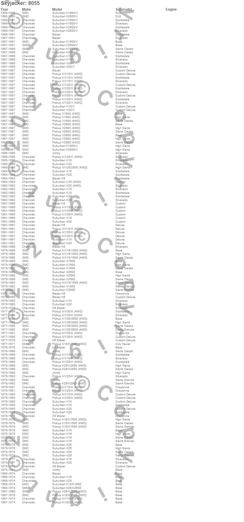 Blazer, Blazer K5, Jimmy, K10 Pickup, K10 Suburban, K15 Suburban, K15/K1500, K15/K1500 Pickup, K15/K1500 Suburban, K1500 Pickup, K1500 Suburban, K20 Pickup, K20 Suburban, K25 Pickup, K25 Suburban, K25/K2500 Pickup, K25/K2500 Suburban, K2500 Pickup, K2500 Suburban, K30 Pickup