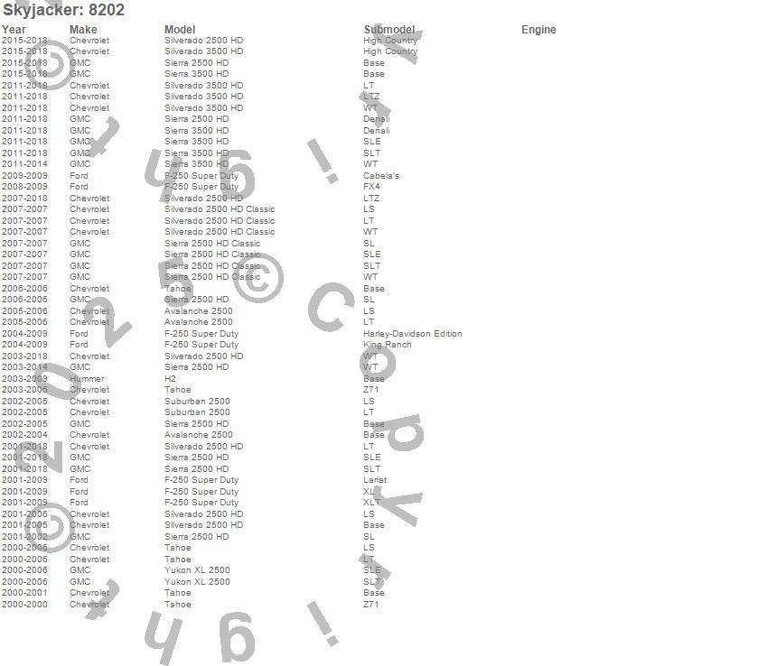 Avalanche 2500, F-250 Super Duty, H2, Sierra 2500 HD, Sierra 2500 HD Classic, Sierra 3500 HD, Silverado 2500 HD, Silverado 2500 HD Classic, Silverado 3500 HD, Suburban 2500, Tahoe, Yukon XL 2500, Chevrolet, Ford, GMC, Hummer, 2018, 2017, 2016, 2015