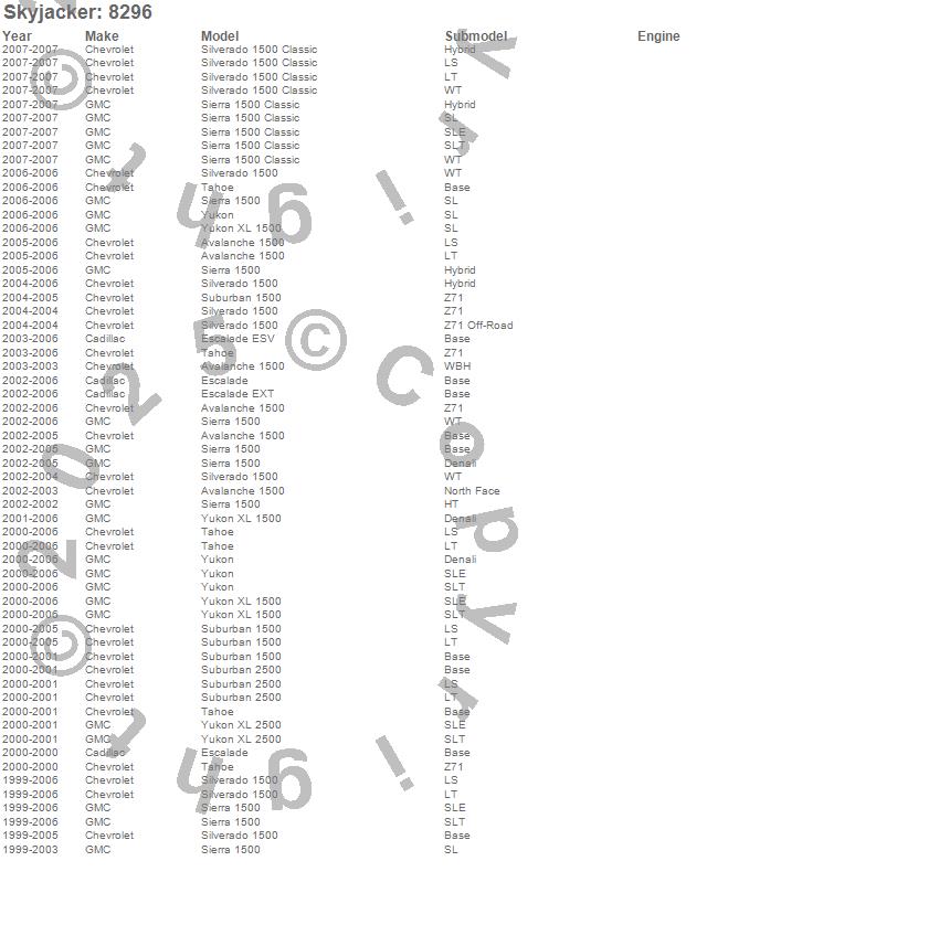 Avalanche 1500, Escalade, Escalade ESV, Escalade EXT, Sierra 1500, Sierra 1500 Classic, Silverado 1500, Silverado 1500 Classic, Suburban 1500, Suburban 2500, Tahoe, Yukon, Yukon XL 1500, Yukon XL 2500, Cadillac, Chevrolet, GMC, 2007, 2006, 2005