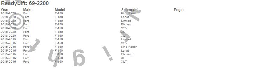ReadyLift - SST Lift Kit P/N 69-2200 Features: