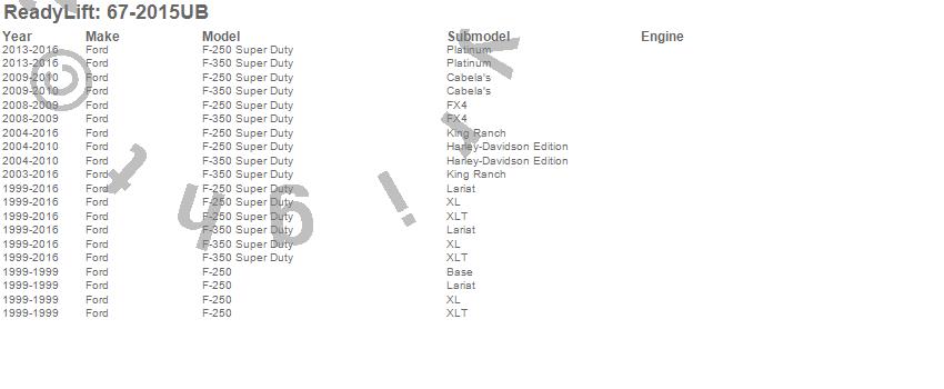 ReadyLift - Long U Bolt Kit P/N 67-2015UB Features:
