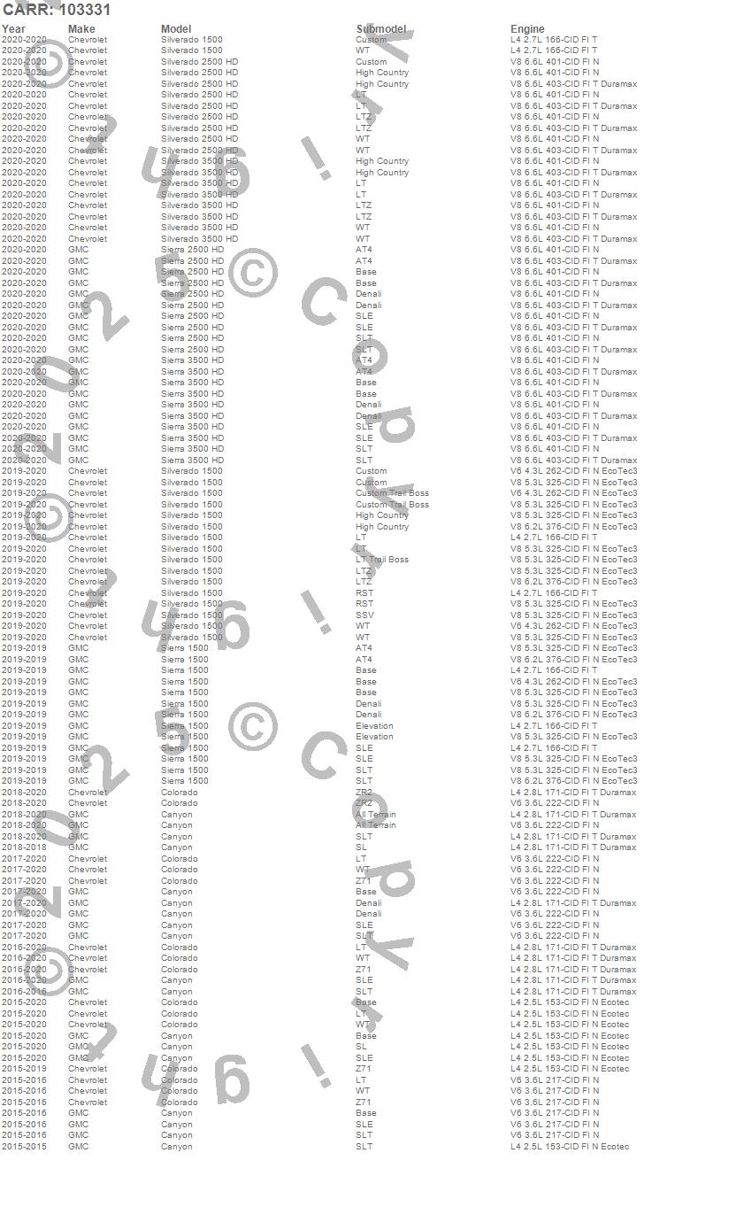 Canyon, Colorado, Sierra 1500, Sierra 2500 HD, Sierra 3500 HD, Silverado 1500, Silverado 2500 HD, Silverado 3500 HD, Chevrolet, GMC, 2020, 2019, 2018, 2017, 2016, 2015
