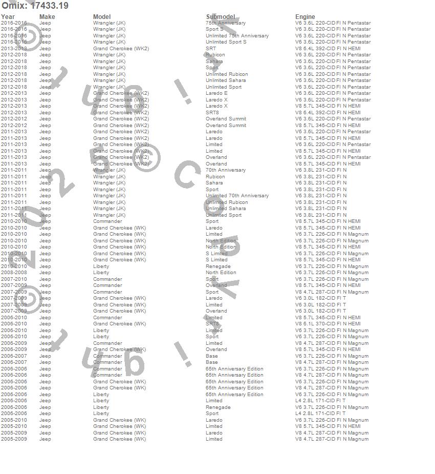 Commander, Grand Cherokee (WK), Grand Cherokee (WK2), Liberty, Wrangler (JK), Jeep, 2018, 2017, 2016, 2015, 2014, 2013, 2012, 2011, 2010, 2009, 2008, 2007, 2006, 2005
