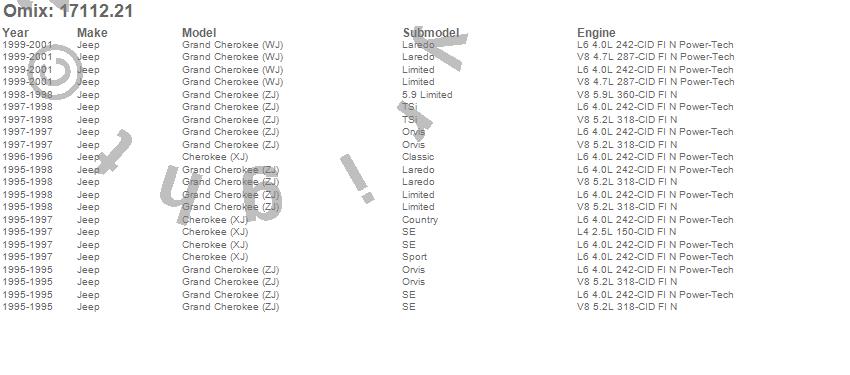 Cherokee (XJ), Grand Cherokee (WJ), Grand Cherokee (ZJ), Jeep, 2001, 2000, 1999, 1998, 1997, 1996, 1995