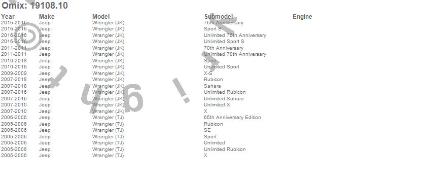 Wrangler (JK), Wrangler (LJ), Wrangler (TJ), Jeep, 2018, 2017, 2016, 2015, 2014, 2013, 2012, 2011, 2010, 2009, 2008, 2007, 2006, 2005