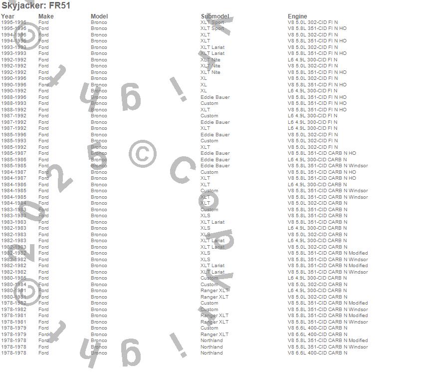 Bronco, Ford, 1996, 1995, 1994, 1993, 1992, 1991, 1990, 1989, 1988, 1987, 1986, 1985, 1984, 1983, 1982, 1981, 1980, 1979