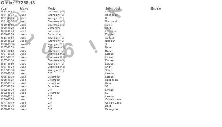 Cherokee (XJ), CJ7, Comanche, Scrambler, Wrangler (YJ), Jeep, 1993, 1992, 1991, 1990, 1989, 1988, 1987, 1986, 1985, 1984, 1983, 1982, 1981, 1980
