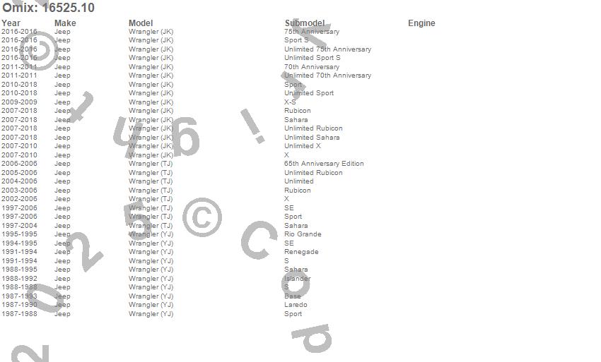 Wrangler (JK), Wrangler (LJ), Wrangler (TJ), Wrangler (YJ), Jeep, 2018, 2017, 2016, 2015, 2014, 2013, 2012, 2011, 2010, 2009, 2008, 2007, 2006, 2005, 2004