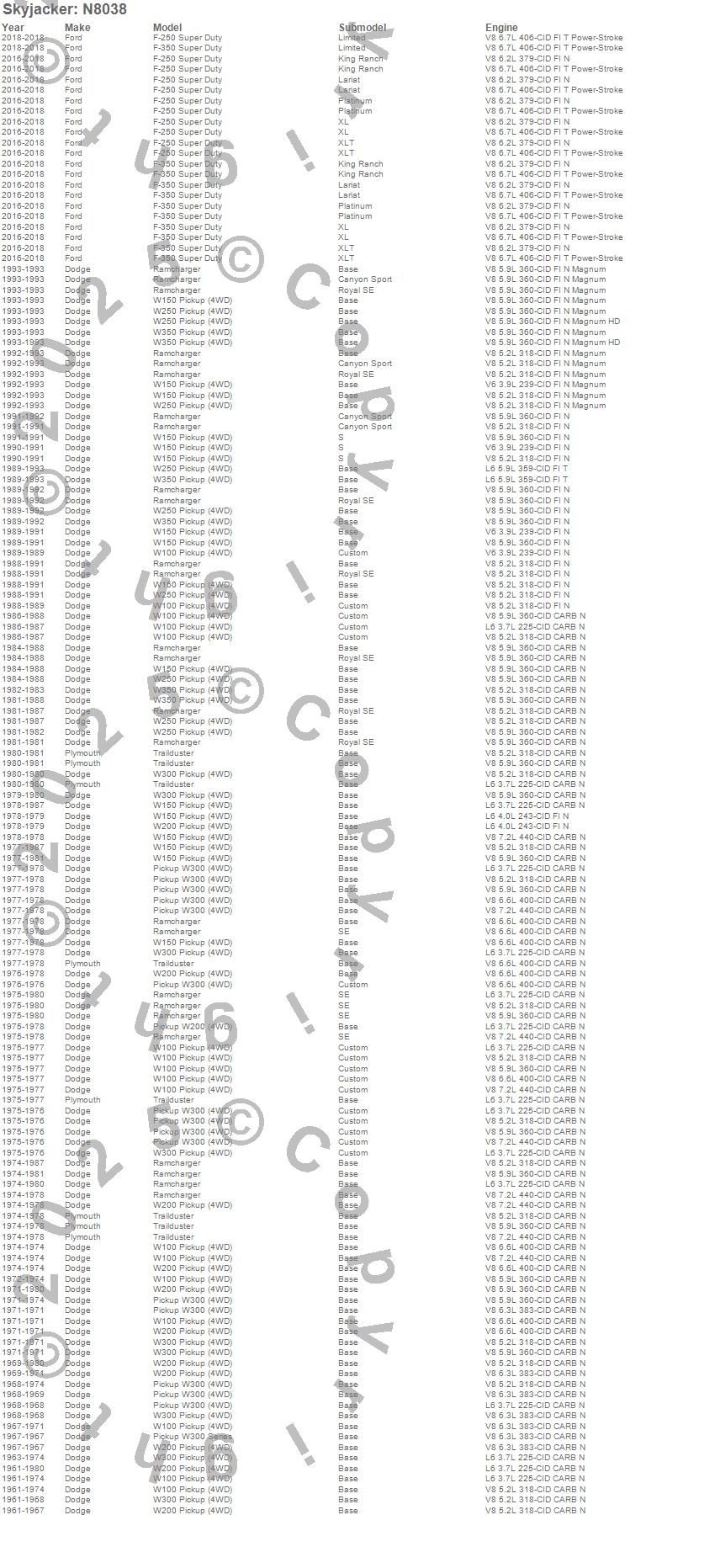 F-250 Super Duty, F-350 Super Duty, Ramcharger, Trailduster, W100 Pickup, W150 Pickup, W200 Pickup, W250 Pickup, W300 Pickup, W300 Series, W350 Pickup, Dodge, Ford, Plymouth, 2018, 2017, 2016, 1993, 1992, 1991