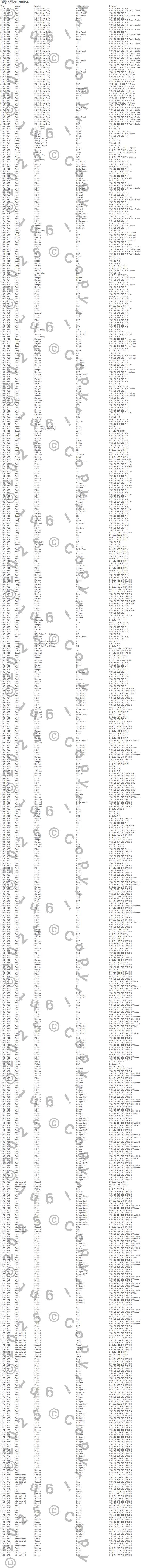4Runner, B2300, B3000, B4000, Bronco, Bronco II, D21 Pickup (Hard Body), Dakota, Explorer, F-100, F-150, F-250, F-250 Super Duty, F-350, F-350 Super Duty, Navajo, Pathfinder, Pickup, Ranger, Samurai