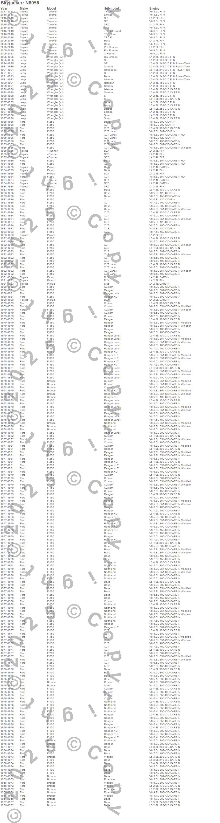 4Runner, Bronco, F-100, F-150, F-250, F-350, Pickup, Tacoma, Wrangler (YJ), Ford, Jeep, Toyota, 2018, 2017, 2016, 2015, 2014, 2013, 2012, 2011