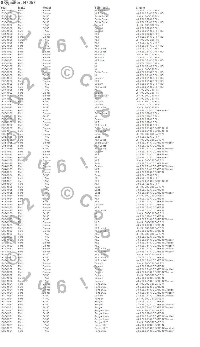 Bronco, F-150, Ford, 1996, 1995, 1994, 1993, 1992, 1991, 1990, 1989, 1988, 1987, 1986, 1985, 1984, 1983, 1982, 1981, 1980