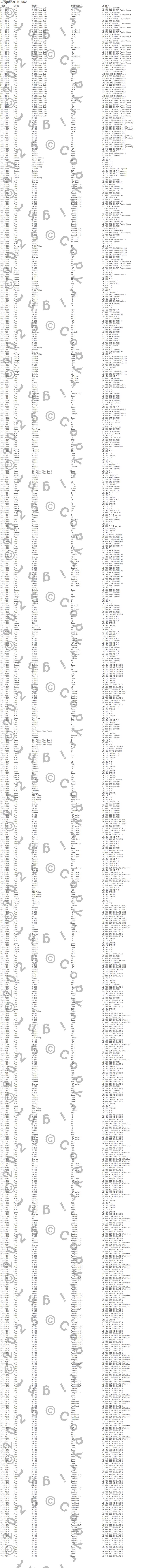 4Runner, 720 Pickup, Amigo, B2000, B2200, B2300, B2600, B3000, B4000, Bronco, Bronco II, D21 Pickup (Hard Body), Dakota, Explorer, F-100, F-150, F-250, F-250 Super Duty, F-350, F-350 Super Duty