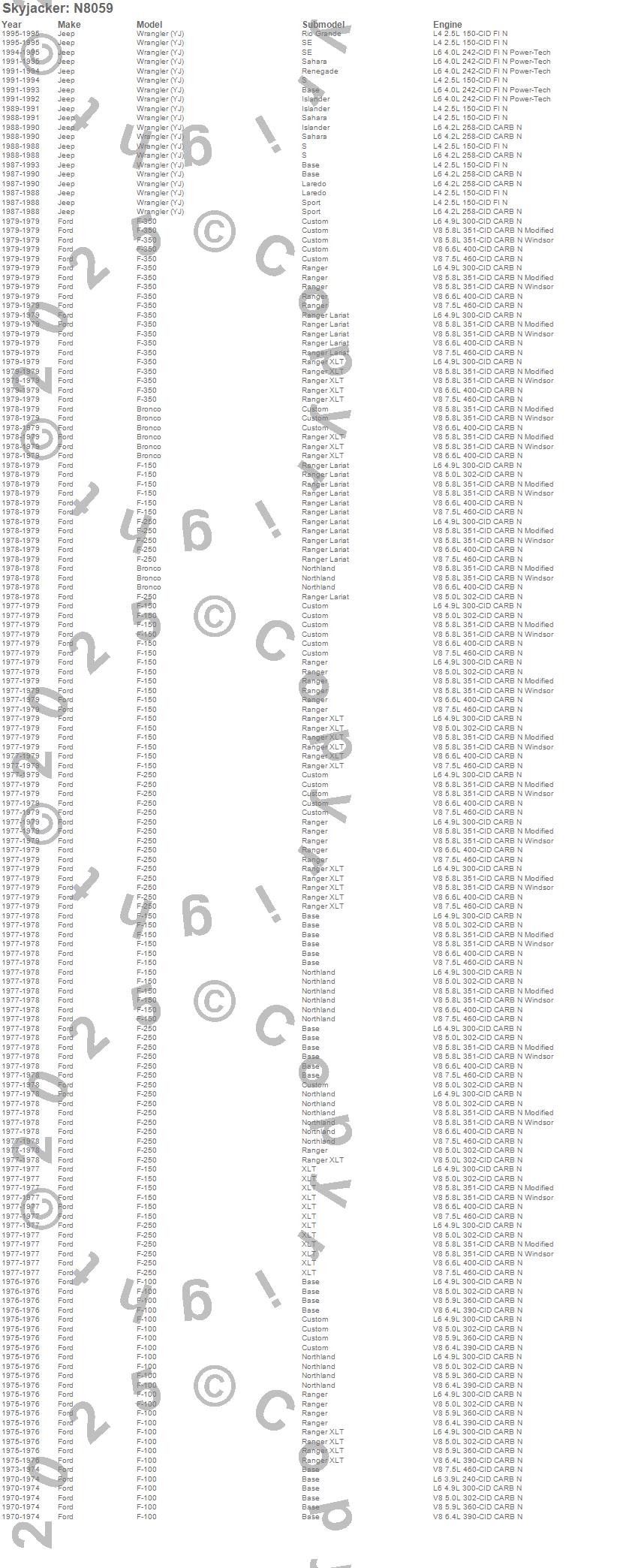 Bronco, F-100, F-150, F-250, F-350, Wrangler (YJ), Ford, Jeep, 1995, 1994, 1993, 1992, 1991, 1990, 1989, 1988, 1987, 1979, 1978, 1977