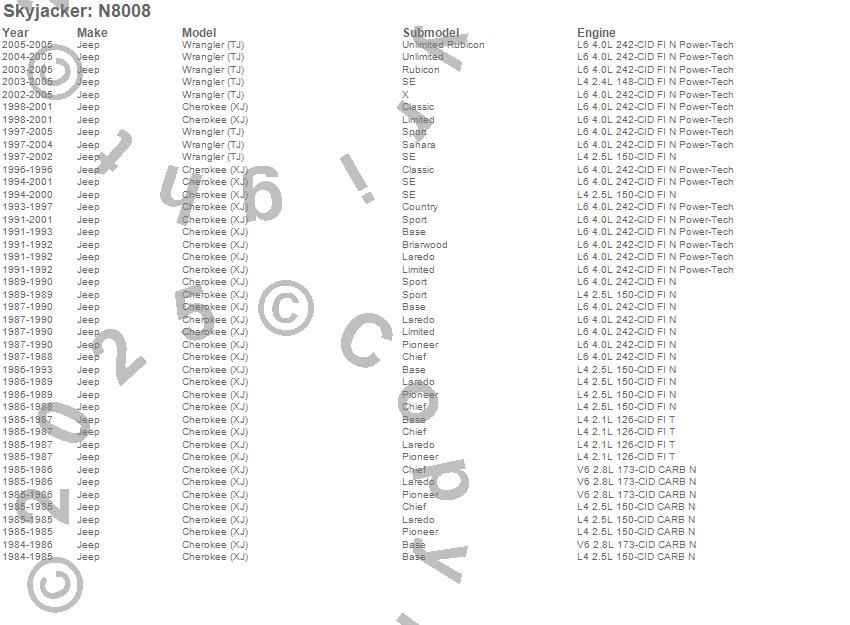 Cherokee (XJ), Wrangler (TJ), Jeep, 2005, 2004, 2003, 2002, 2001, 2000, 1999, 1998, 1997, 1996, 1995, 1994, 1993, 1992, 1991, 1990, 1989