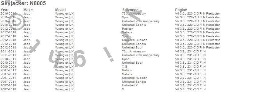 Wrangler (JK), Jeep, 2018, 2017, 2016, 2015, 2014, 2013, 2012, 2011, 2010, 2009, 2008, 2007