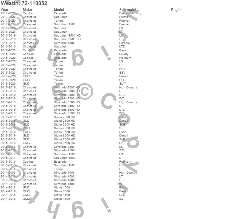 Below is an abbreviated list of applications for the Sure-Fit Floor Liner.