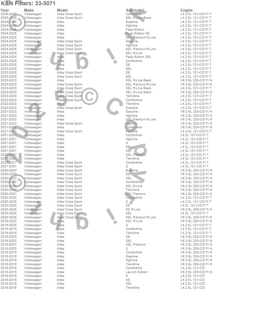 K&N Filters - Air Filter P/N 33-5071 Features: