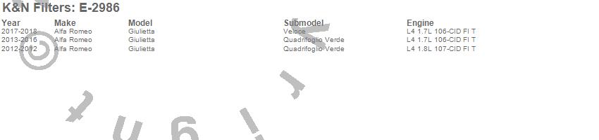 Below is an abbreviated list of applications for the Air Filter.