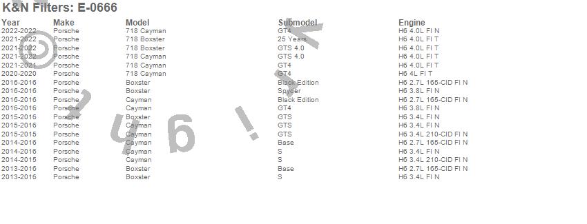 Below is an abbreviated list of applications for the Air Filter.